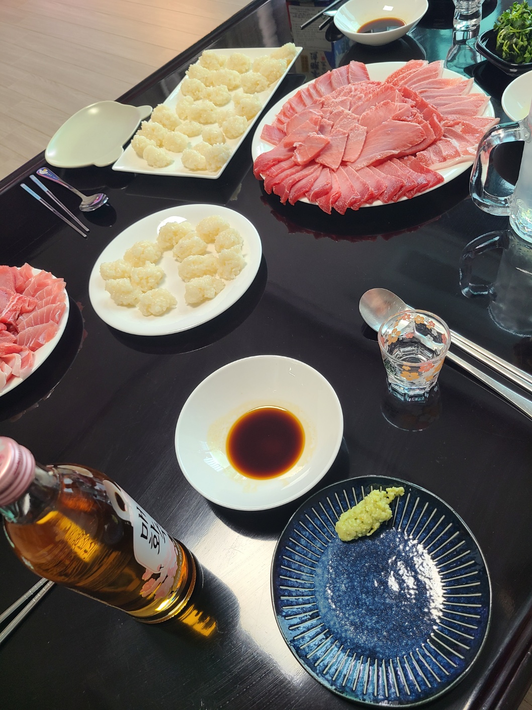 참치집에서는 비싸서 많이 못먹는 고급부위로 쫘악 깔아주면 지인들 반응이 정말 좋습니다.